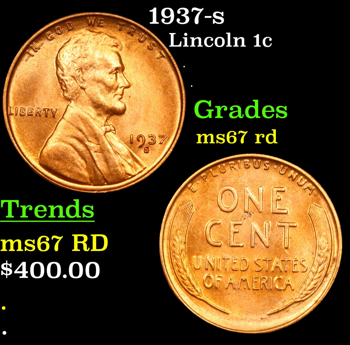 1937-s Lincoln Cent 1c Grades GEM++ Unc RD.