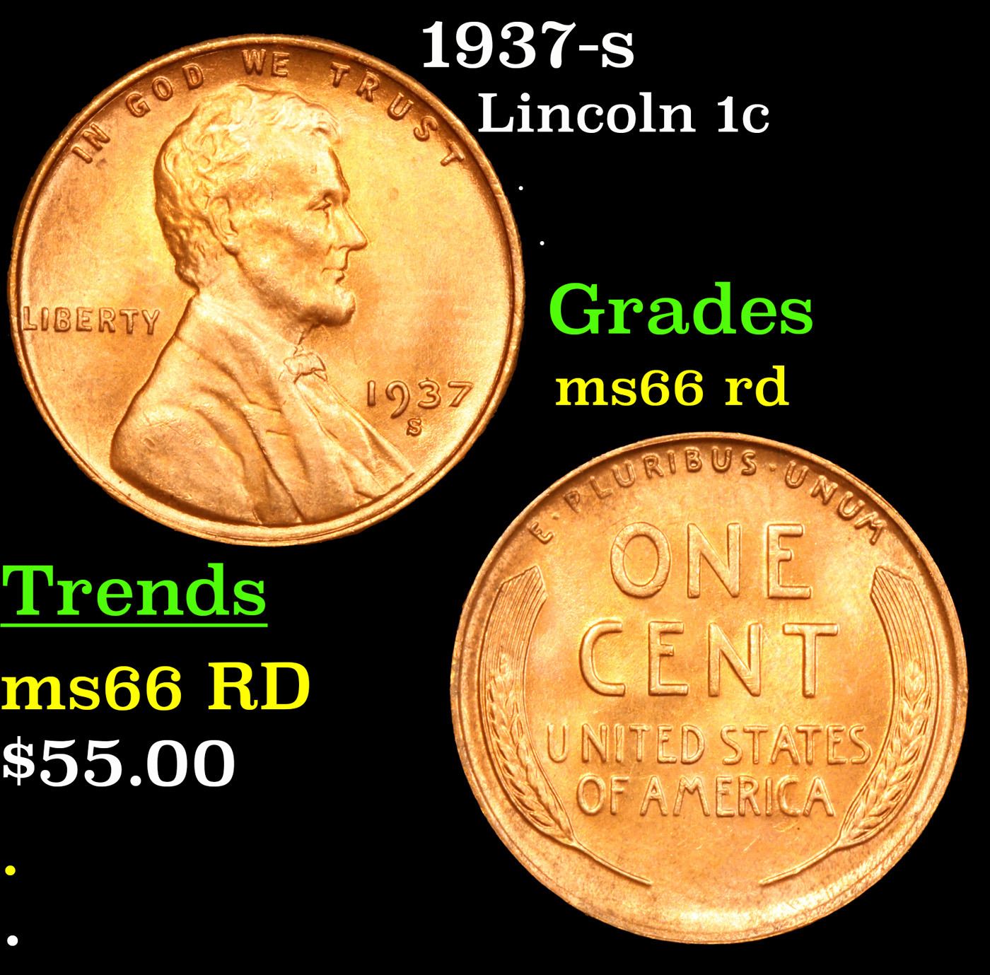 1937-s Lincoln Cent 1c Grades GEM+ Unc RD.