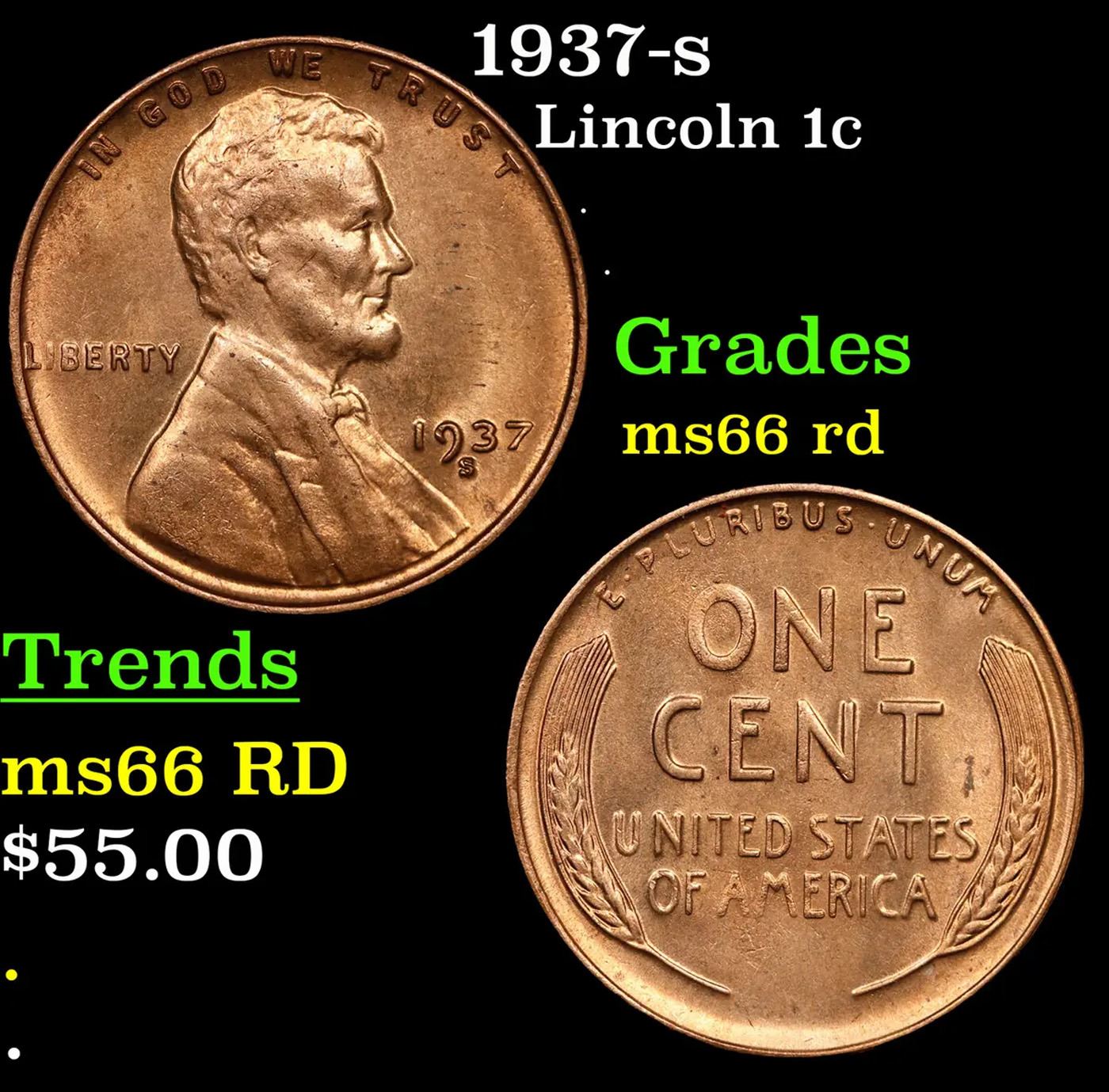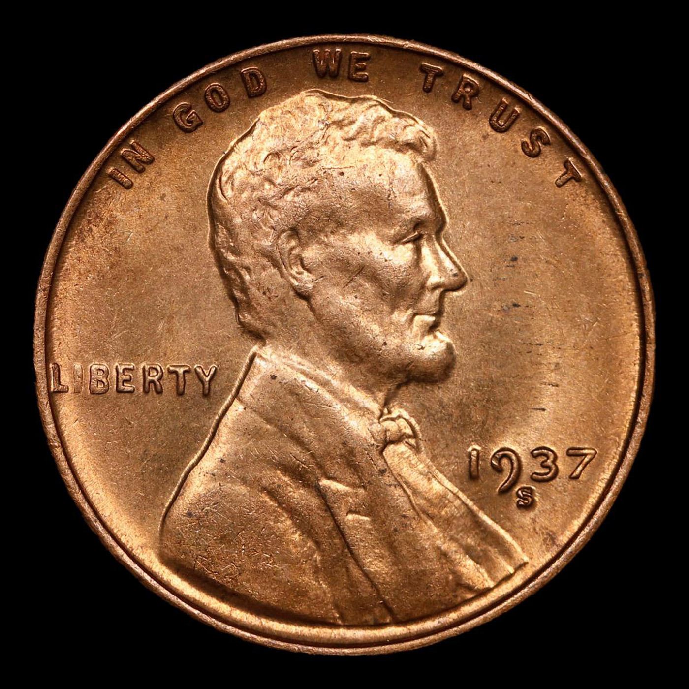 1937-s Lincoln Cent 1c Grades GEM+ Unc RD.