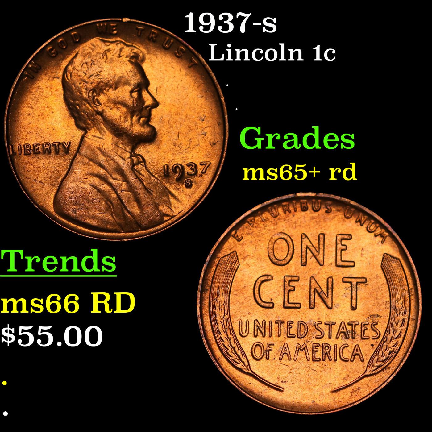 1937-s Lincoln Cent 1c Grades Gem+ Unc RD.
