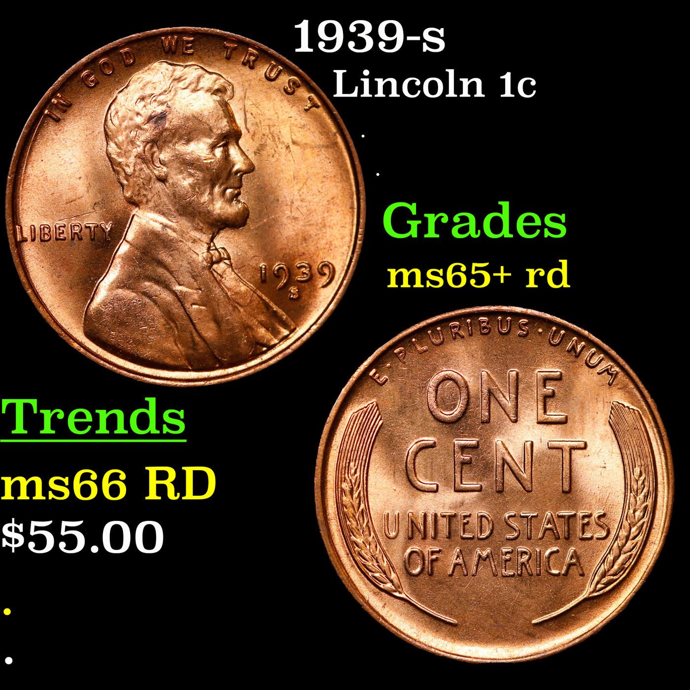 1937-s Lincoln Cent 1c Grades Gem+ Unc RD.