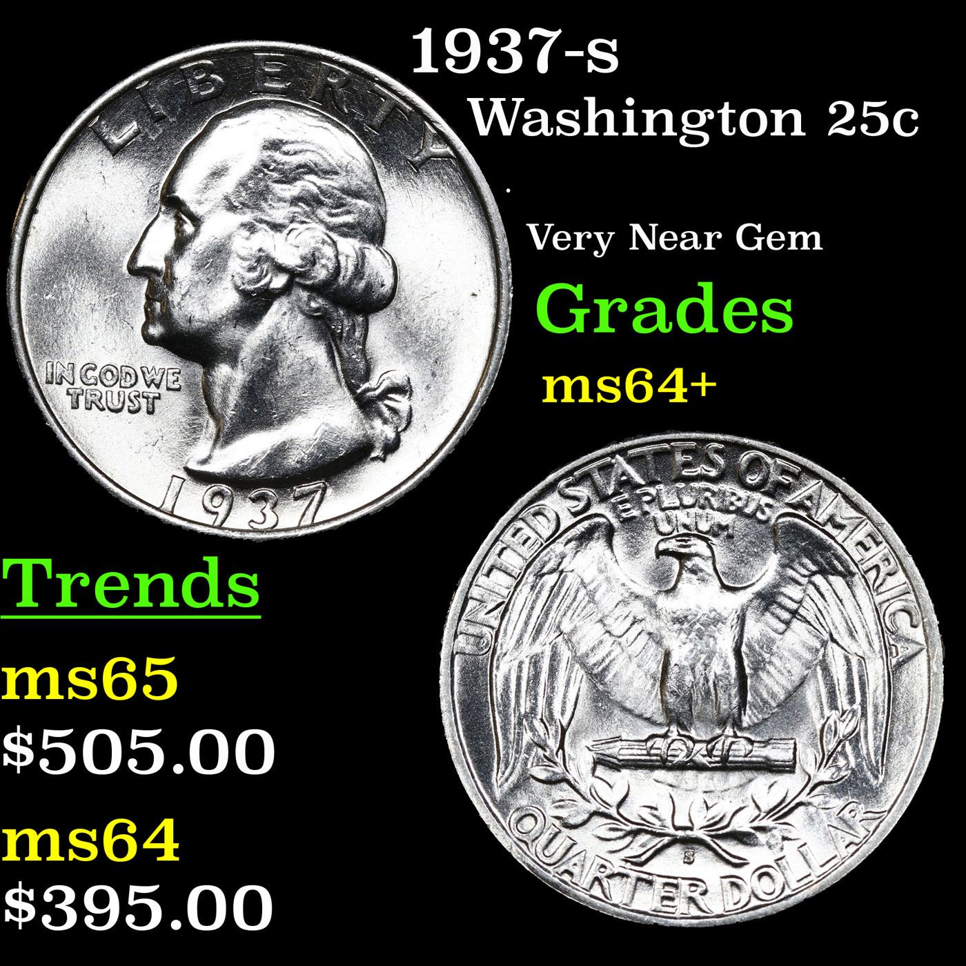 1937-s Washington Quarter 25c Grades Choice+ Unc.