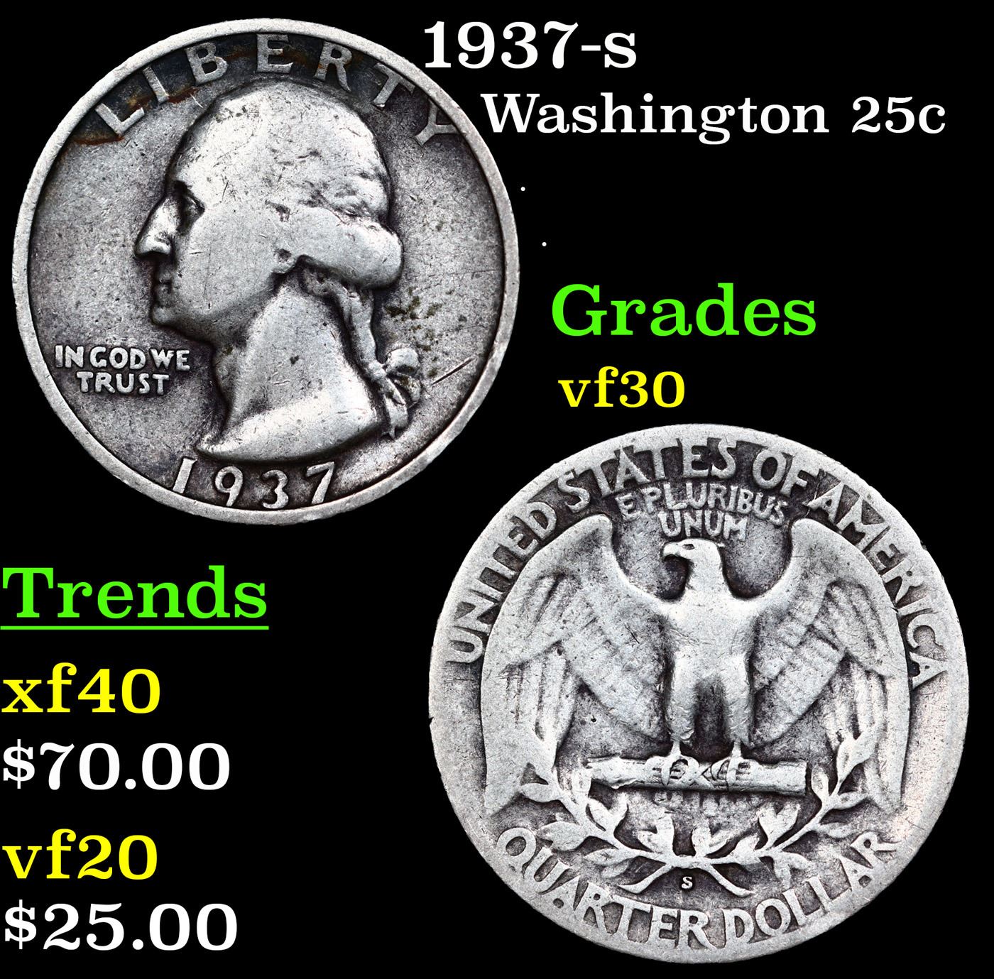 1937-s Washington Quarter 25c Grades vf+.