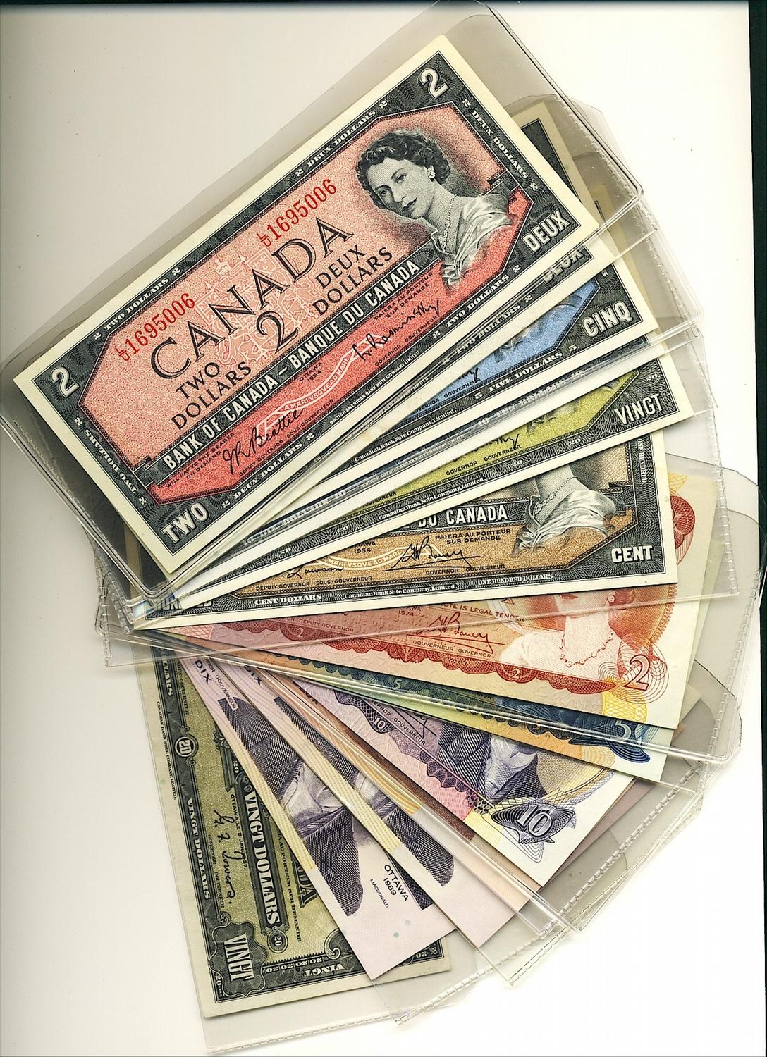 1937 to 1986 Banknotes, Lot of 14 notes. Includes 1954 $2(2), $5(1), $10(1), $20(1), $100(1), 1974 $2, 1972 $2, 1971 $10, 1986 $2, 1989(2) & 1937 $20. Notes grade VF to UNC.