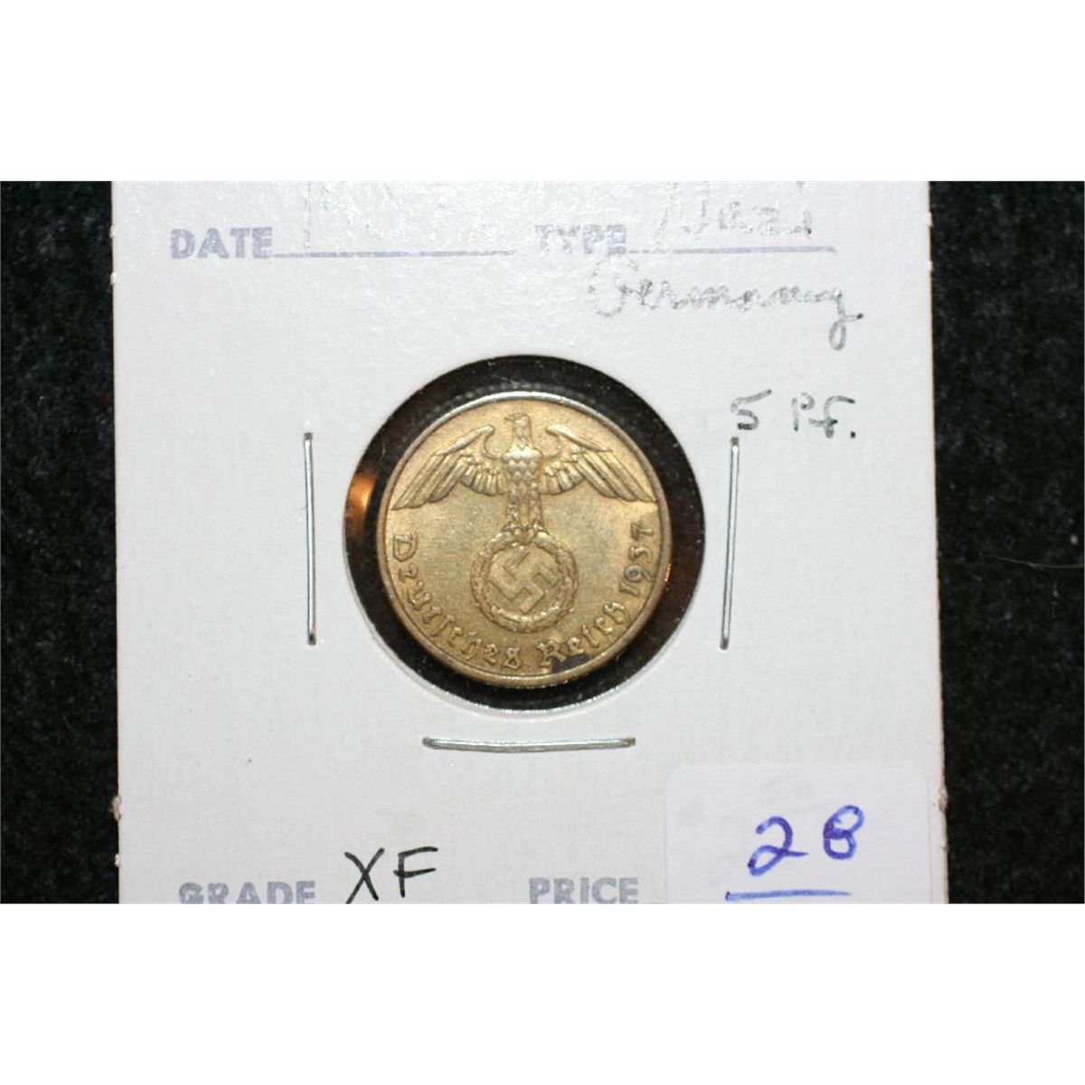 1937A Nazi Germany 5 Reichspfennig, XF, Flying Eagle w/Swatstika