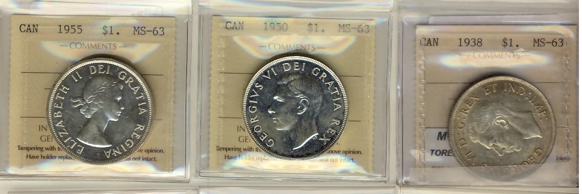1938 $1, 1950 SWL & 1955 ICCS MS63. Lot of 3 coins.