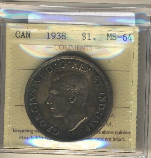 1938 1 Dollar ICCS MS-64. Nicely toned.