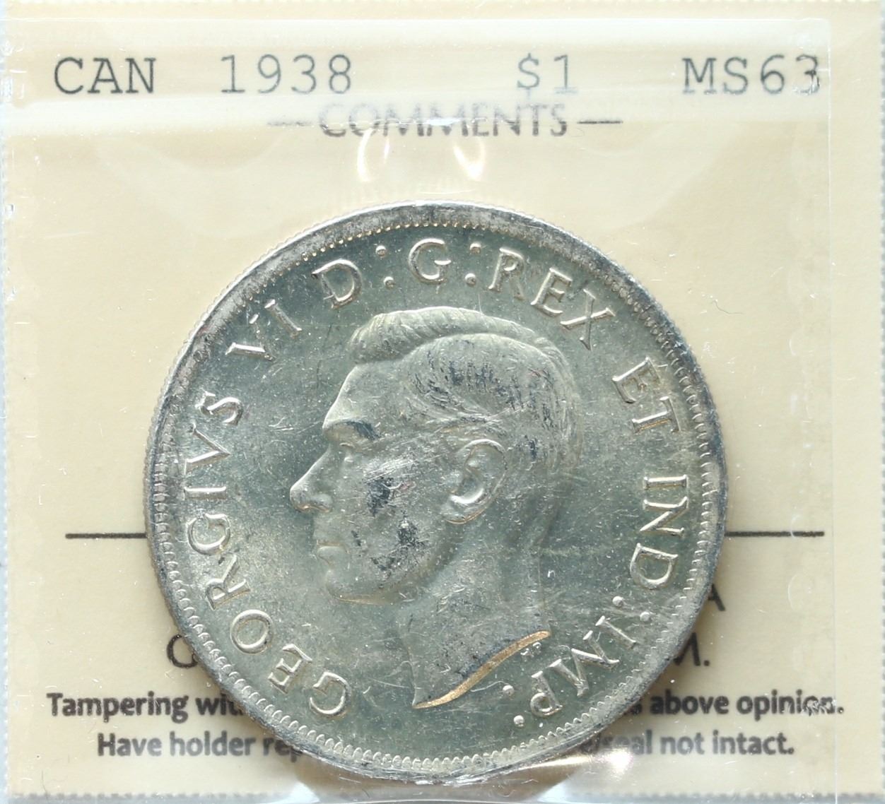 1938 $1 ICCS Choice Mint State-63. Lustrous white issue.