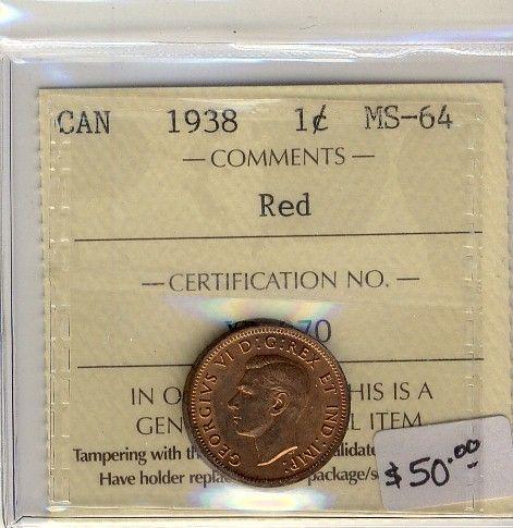 1938 1¢ ICCS MS64 Red