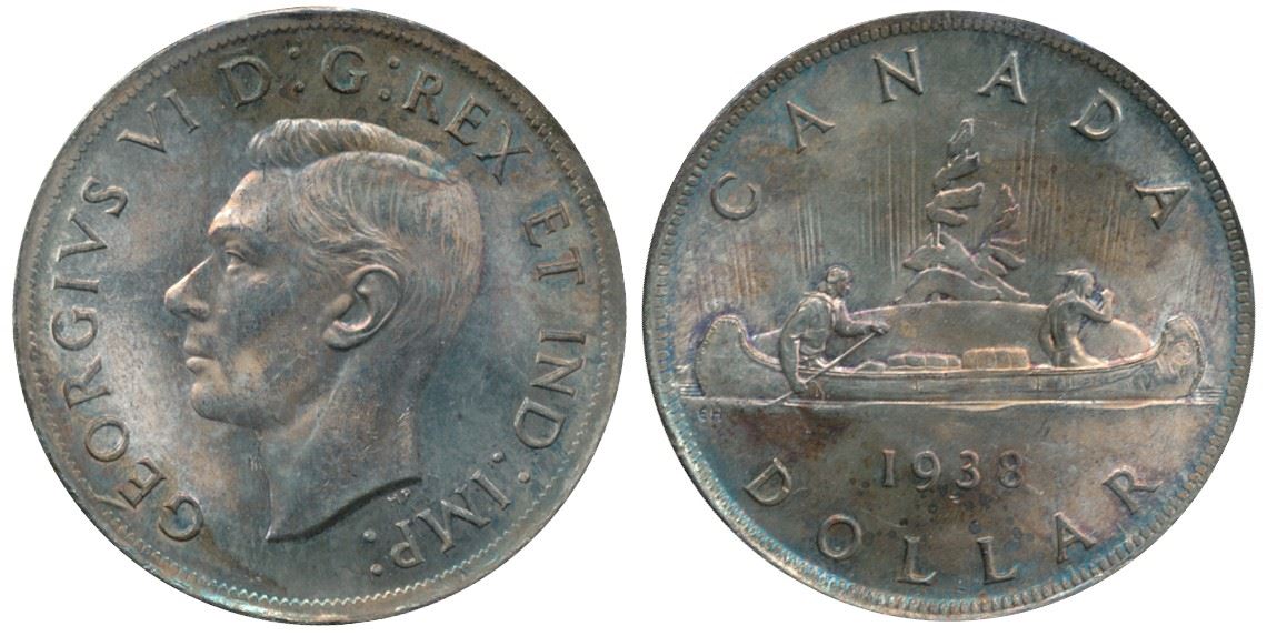 1938 $1 ICCS MS65. Attractive green and red tints.