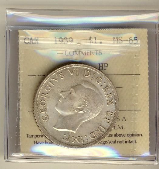 1938 $1 ICCS MS65. Fully struck with clean surfaces. Lovely russet tone all around on the obverse while the reverse is white with a touch of gold. Only 3 examples finer.