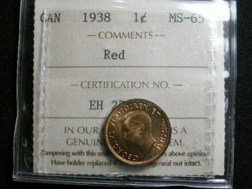1938 1¢ ICCS MS65 Red. A very flashy coin! Excellent strike and clean fields.