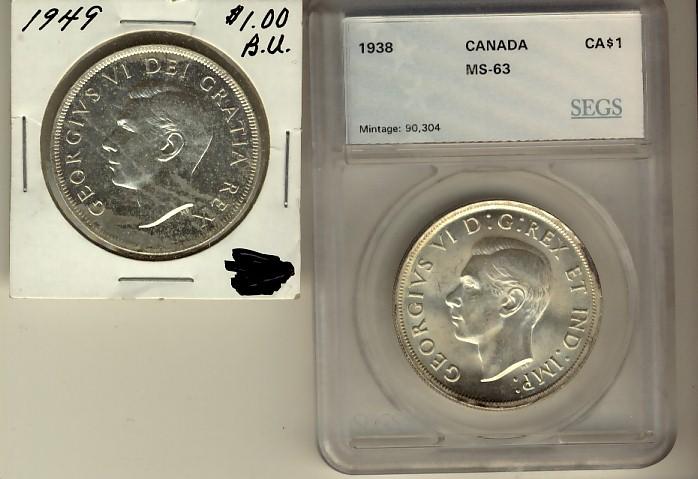 1938 $1 SEGS MS63 & 1949 BU, not 3rd party graded.