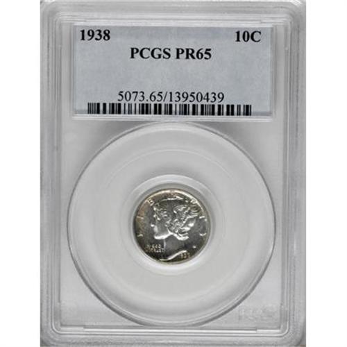 <B>1938 10C PR65 PCGS.</B></I> PCGS Population (816/791). NGC Census: (449/831). Mintage: 8,728. Numismedia Wsl. Price for NGC/PCGS coin in PR65: $400. (#5073)<BR><BR><B>Coin Engraver:</B> Adolph A. Weinman<BR><BR><b>Shipping:</b> Coins & Currency (<a target="_blank" href="http://www.heritageauctions.com/common/shipping.php">view shipping information</a>)