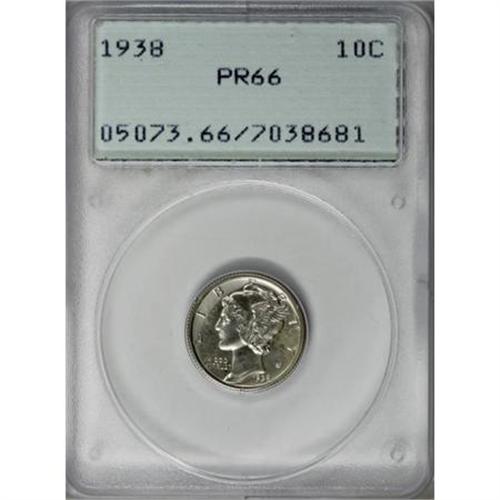 <B>1938 10C PR66 PCGS.</B></I> PCGS Population (625/161). NGC Census: (568/212). Mintage: 8,728. Numismedia Wsl. Price for NGC/PCGS coin in PR66: $460. (#5073)<BR><BR><B>Coin Engraver:</B> Adolph A. Weinman<BR><BR><b>Shipping:</b> Coins & Currency (<a target="_blank" href="http://www.heritageauctions.com/common/shipping.php">view shipping information</a>)