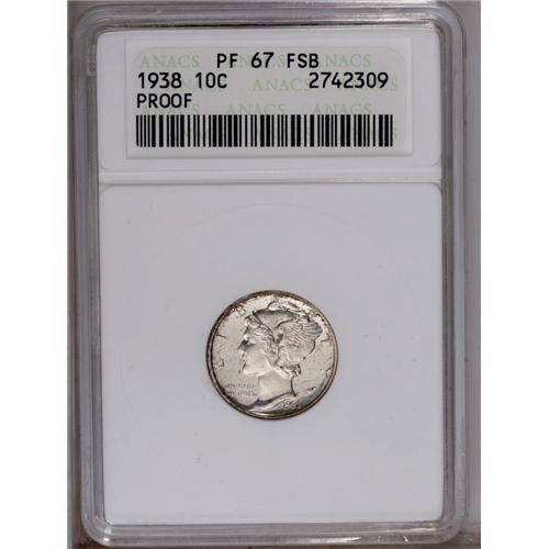 1938 10C PR67 ANACS. The original mint brilliance has 1938[10C] PR67 Full Bands ANACS.