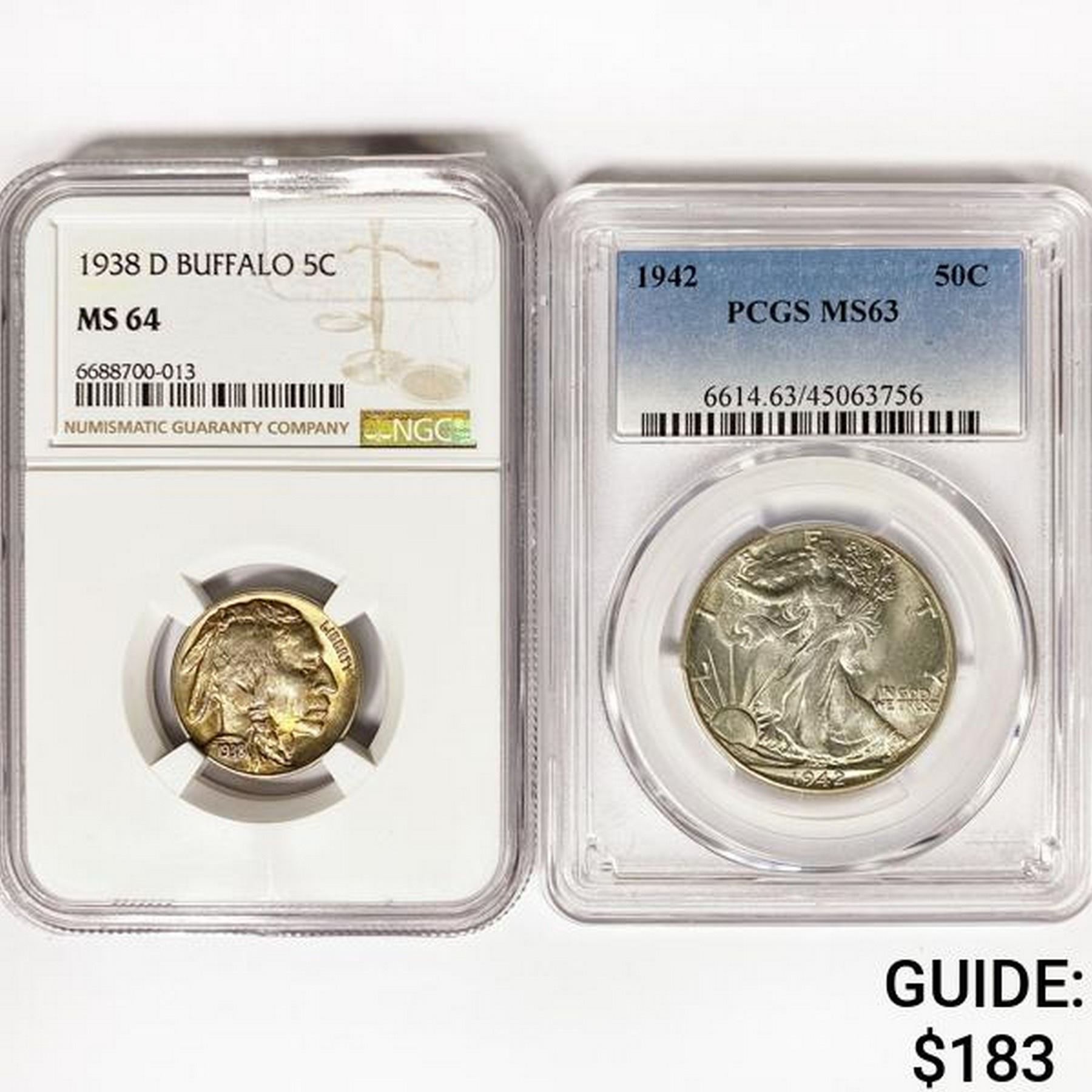 1938-1942 SET (2) 1 5C B,1 50C WL