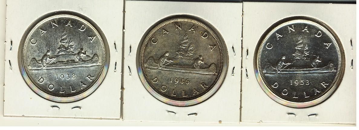 1938, 1946, 1953 NSS, lot of 3 coins. Grades vary from VF-30 to MS62.