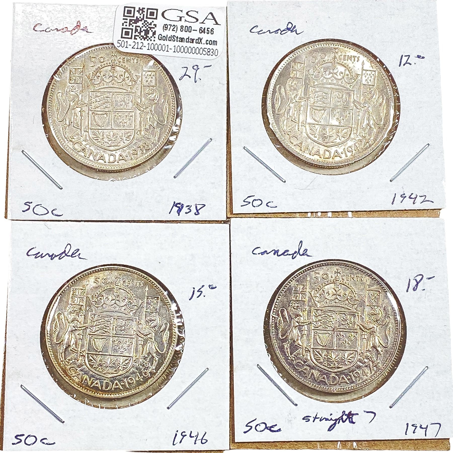 1938-1947 Better Date Canada Half Dollar [4 Coins] AU+