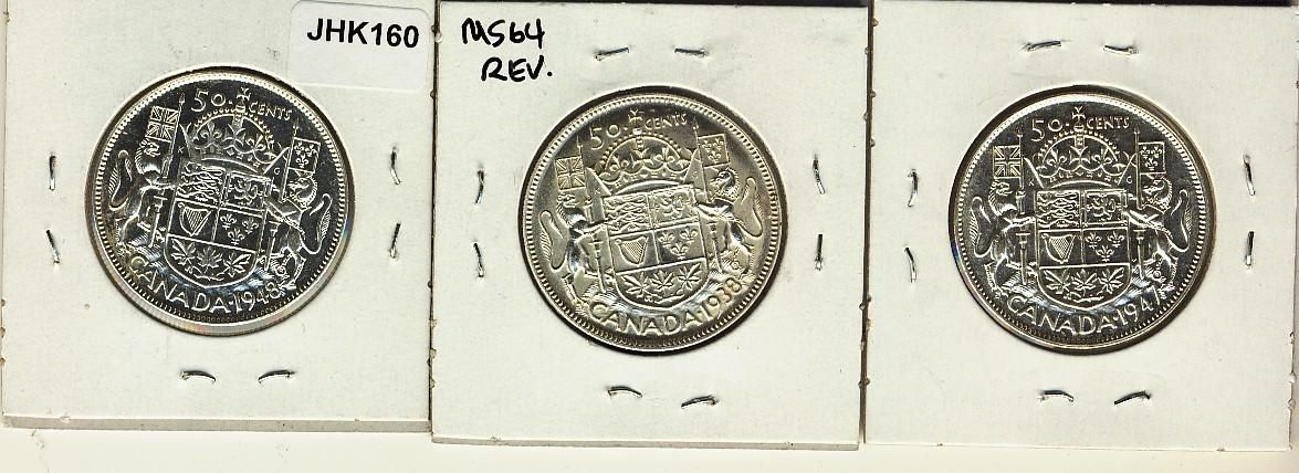 1938, 1947 ML, 1948 50¢. Lot of 3 coins. The 47 ML is VF-30 and the others are AU-50 or better. A nice lot.