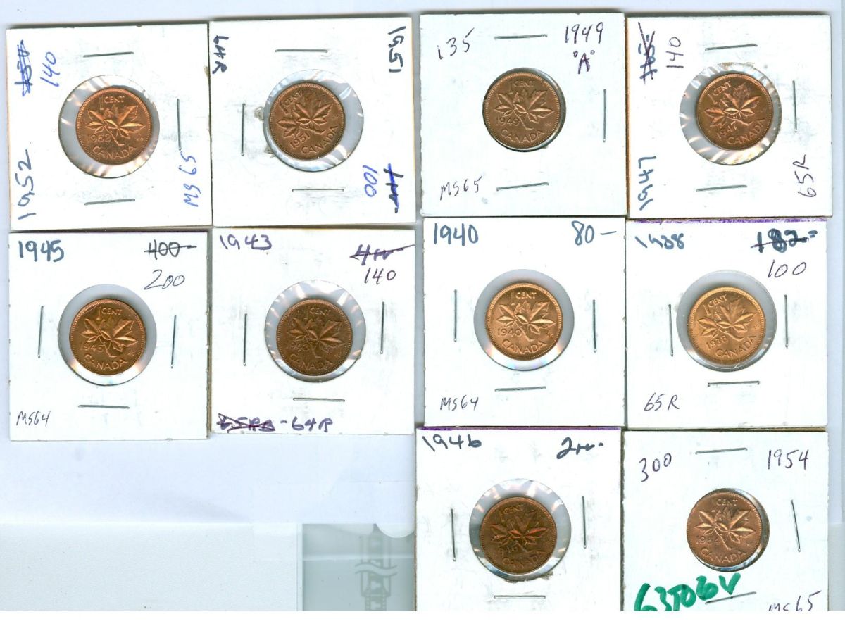 8. The estimates listed are taken from the Canadian Coin News, Charlton catalogues, Canadian Dealers News letter and retail prices, e-bay sales, Cornwell report and/or the actual market selling/ asking prices. Key dates and Highest grade material will generally command a premium and should sell close to and/or above the estimates. Our estimates are fair and very reasonable, please bid accordingly. No lot should sell less than 50% of the lowest estimates. With a bid of 80% of the lowest estimate, you have a fair chance of succeeding, with a bid of 100% of the highest estimate, you will be likely to succeed.