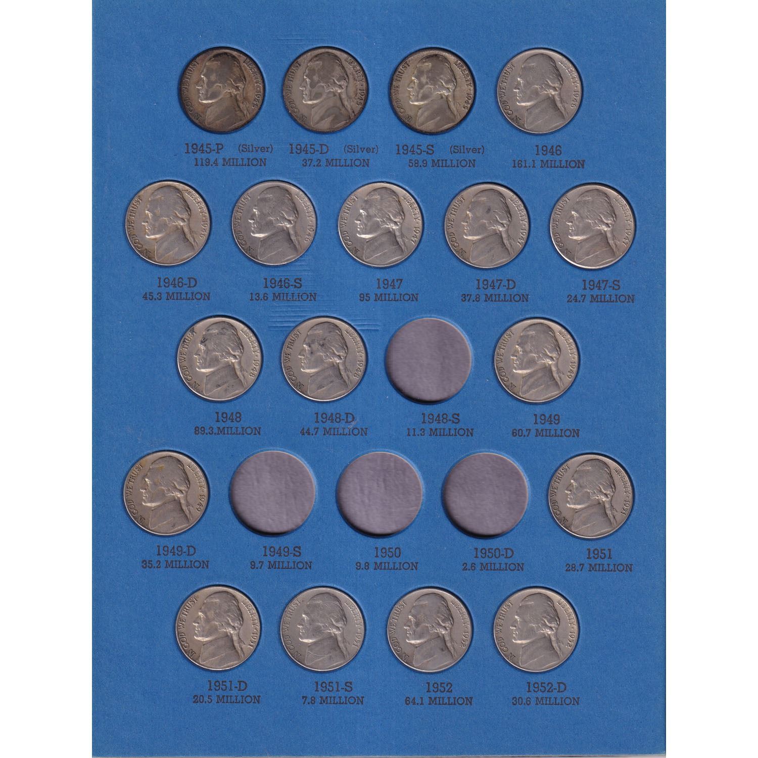 1938-1961 USA Jefferson Nickels in Whitman folder. 48 pcs
