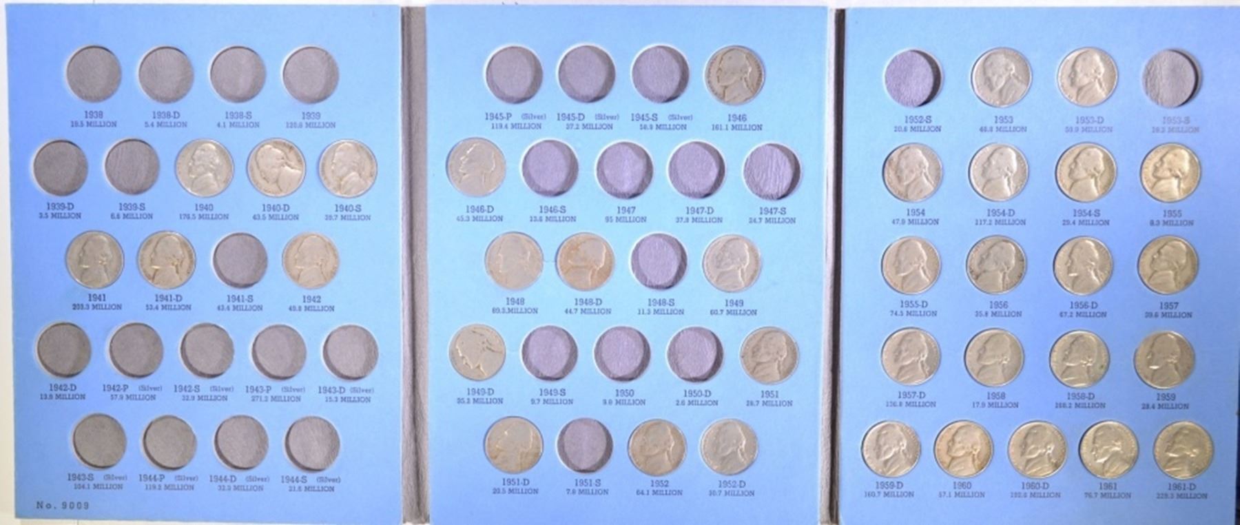 2- 1962 & UP PARTIAL NICKEL SETS; 3- 1938-61 PARTIAL NICKEL SETS IN ALBUMS ESTIMATE $140. - 160.
