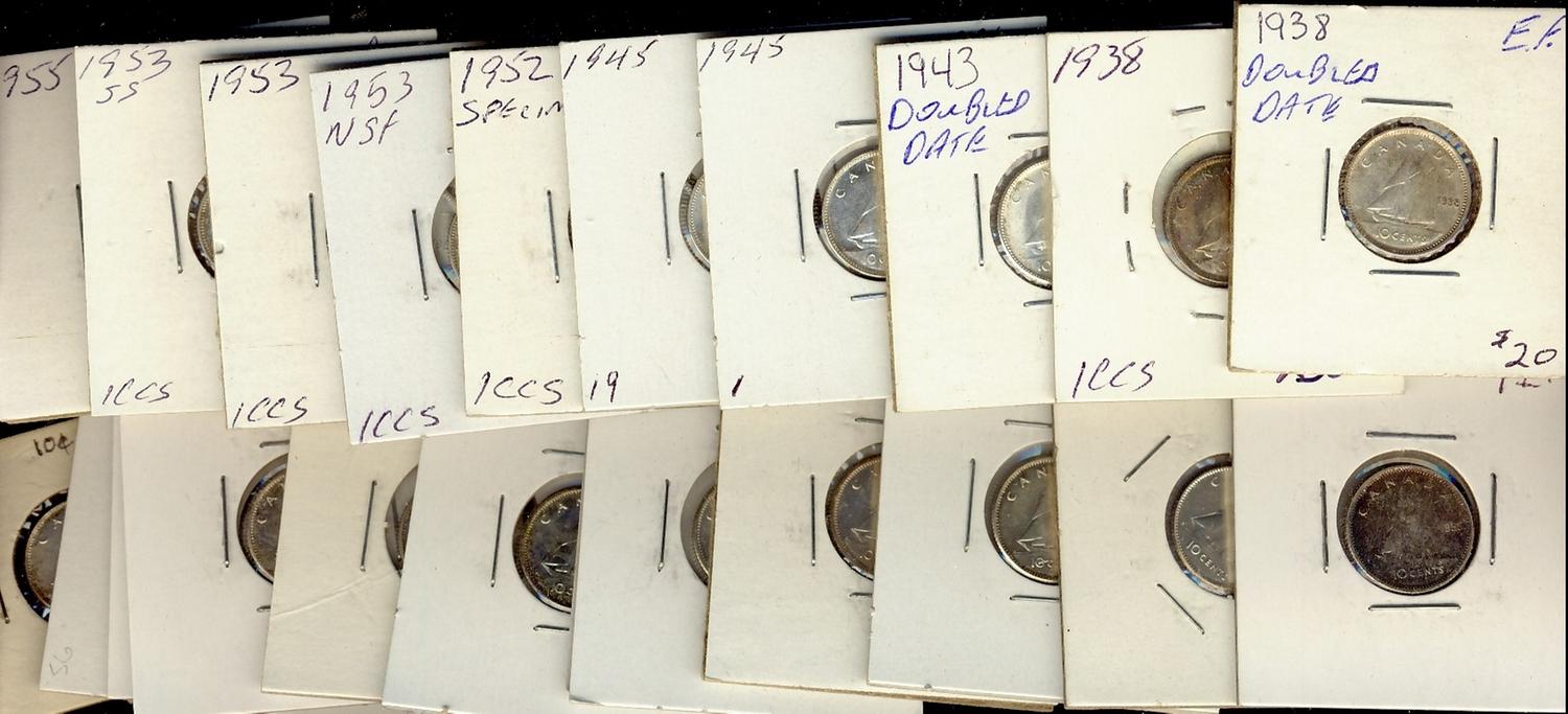 1938-1965 10¢. Lot of 27 pcs ranging from VF to Gem BU and PL. Includes 1938(2), 1943, 1945(2), 1952, 1953(3), 1955(3), 1956(4), 1958(2), 1959(8) & 1967. Should be viewed.
