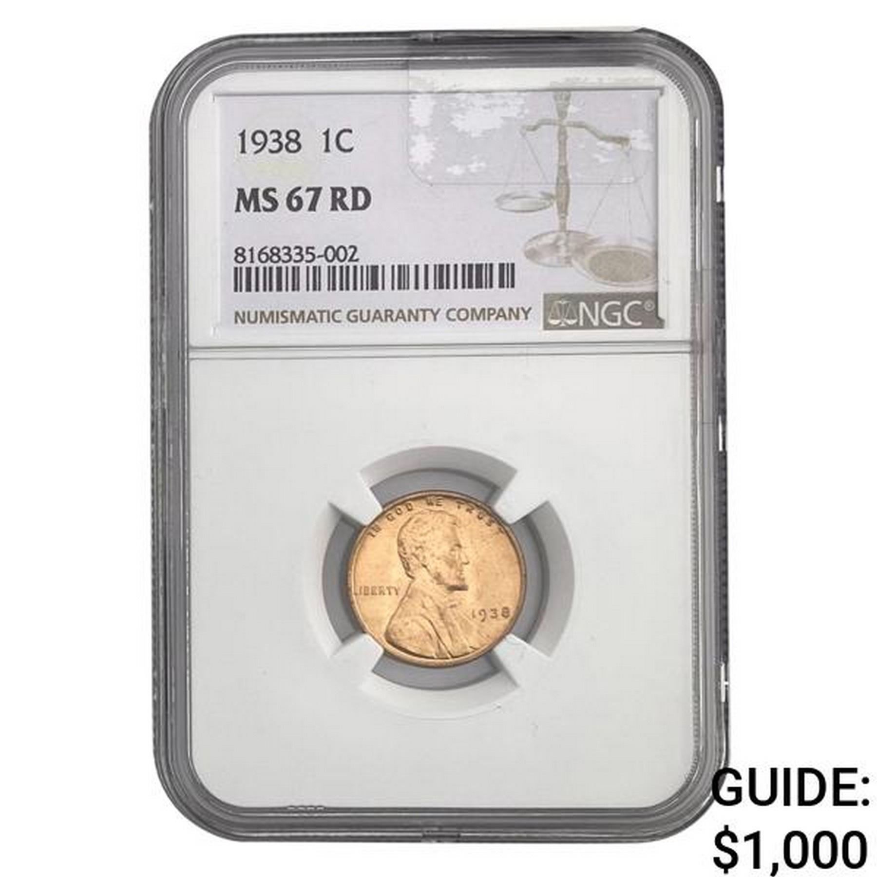 1938 1C Lincoln Cent NGC MS67 RD
