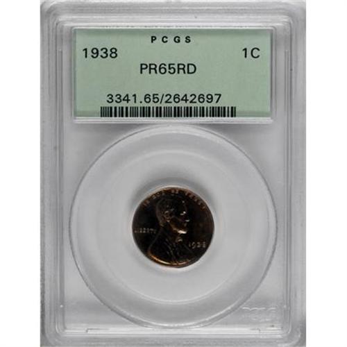 <B>1938 1C PR65 Red PCGS.</B></I> PCGS Population (479/246). NGC Census: (204/128). Mintage: 14,734. Numismedia Wsl. Price for NGC/PCGS coin in PR65: $185. (#3341)<BR><BR><B>Coin Engraver:</B> Victor D. Brenner<BR><BR><b>Shipping:</b> Coins & Currency (<a target="_blank" href="http://www.heritageauctions.com/common/shipping.php">view shipping information</a>)