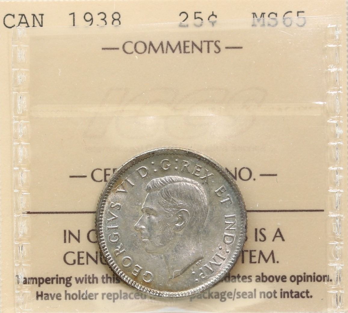 1938 25¢ ICCS Gem Mint State-65 A lustrous example.