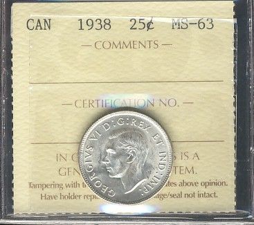 1938 25¢ ICCS MS63.