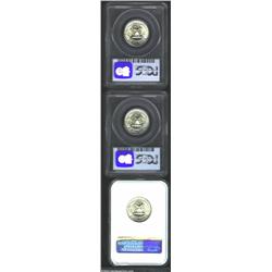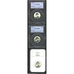 1938 25C MS64 NGC, soft frosted mint luster; 1939-S MS64 PCGS, lustrous; and a 1951-D MS65 PCGS, bri