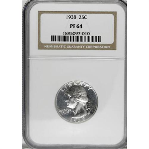 <B>1938 25C PR64 NGC.</B></I> NGC Census: (213/737). PCGS Population (448/1061). Mintage: 8,045. Numismedia Wsl. Price for NGC/PCGS coin in PR64: $220. (#5977)<BR><BR><B>Coin Engraver:</B> John Flanagan<BR><BR><b>Shipping:</b> Coins & Currency (<a target="_blank" href="http://www.heritageauctions.com/common/shipping.php">view shipping information</a>)