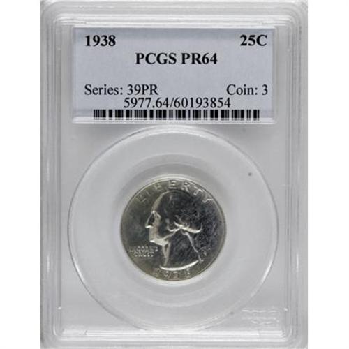 <B>1938 25C PR64 PCGS.</B></I> PCGS Population (445/1048). NGC Census: (209/701). Mintage: 8,045. Numismedia Wsl. Price for NGC/PCGS coin in PR64: $220. (#5977)<BR><BR><B>Coin Engraver:</B> John Flanagan<BR><BR><b>Shipping:</b> Coins & Currency (<a target="_blank" href="http://www.heritageauctions.com/common/shipping.php">view shipping information</a>\)