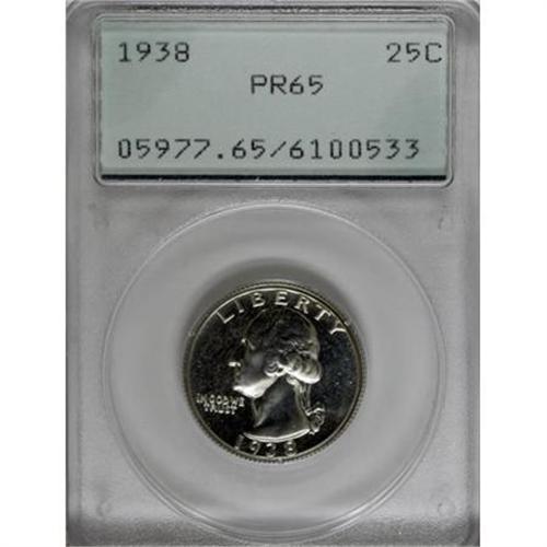 <B>1938 25C PR65 PCGS.</B></I> PCGS Population (611/436). NGC Census: (288/419). Mintage: 8,045. Numismedia Wsl. Price for NGC/PCGS coin in PR65: $290. (#5977)<BR><BR><B>Coin Engraver:</B> John Flanagan<BR><BR><b>Shipping:</b> Coins & Currency (<a target="_blank" href="http://www.heritageauctions.com/common/shipping.php">view shipping information</a>)