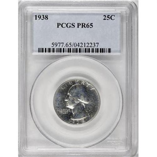 <B>1938 25C PR65 PCGS.</B></I> PCGS Population (622/452). NGC Census: (299/439). Mintage: 8,045. Numismedia Wsl. Price for NGC/PCGS coin in PR65: $280. (#5977)<BR><BR><B>Coin Engraver:</B> John Flanagan<BR><BR><b>Shipping:</b> Coins & Currency (<a target="_blank" href="http://www.heritageauctions.com/common/shipping.php">view shipping information</a>)