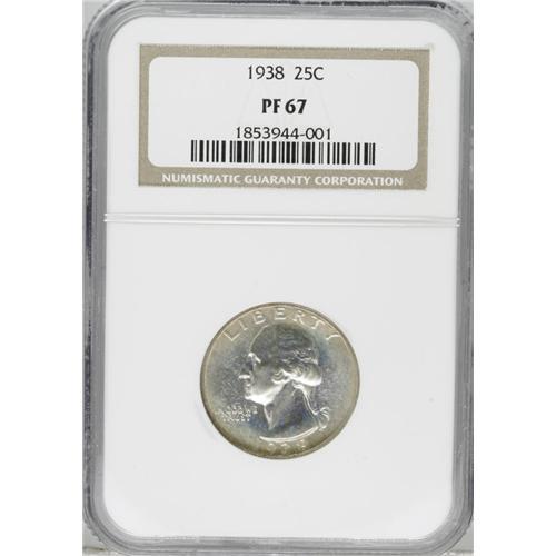 1938 25C PR67 NGC. Fully struck with deeply reflective