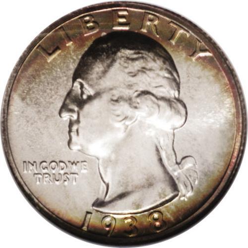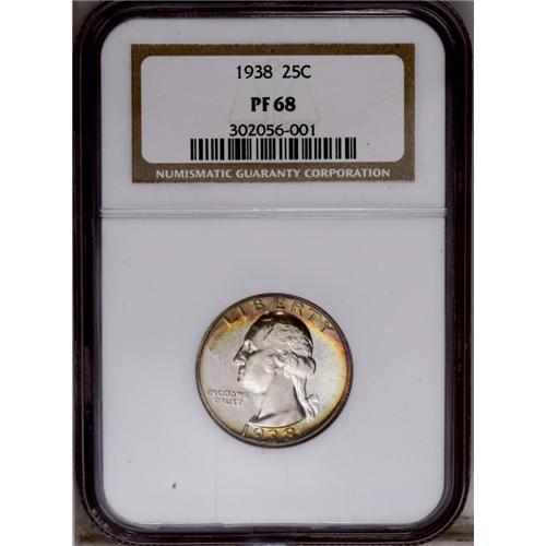 1938 25C PR68 NGC. Beautifully toned with green, red, 1938[25C] PR68 NGC.