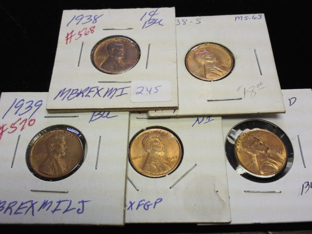 1938, 38-S, 39, 44 & 51-D LINCOLN CENTS (UNC)
