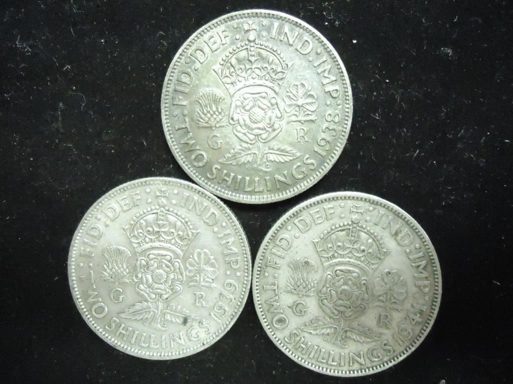 1938,39 & 1941 GREAT BRITAIN SILVER 2 SHILLINGS