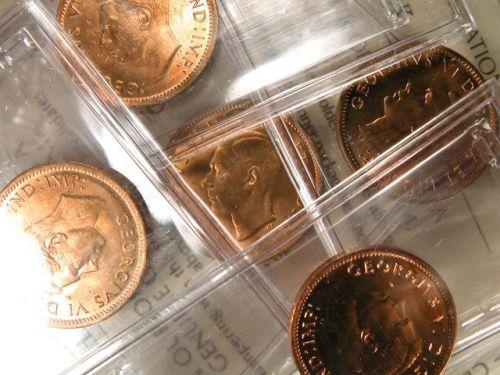 Canada Cent 1938, 1939, 1940, 1946 and 1947, all ICCS MS-64 Red, and all over 90% red
