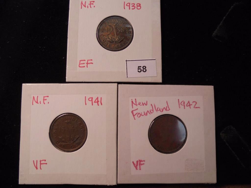 1938,41 & 42 NEWFOUNDLAND ONE CENT