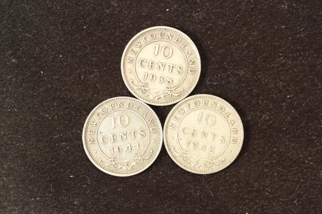 1938,41 & 42 NEWFOUNDLAND SILVER 10 CENTS