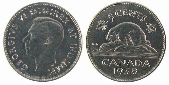 1938 5¢ ICCS MS65. Well struck with full original lustre. Excessively scarce and rarely offered in Gem condition. Missing in most advanced collections. Worth a premium bid.