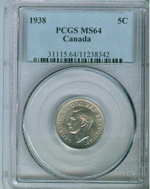 1938 5¢ PCGS MS64. Key and underrated in high grade.