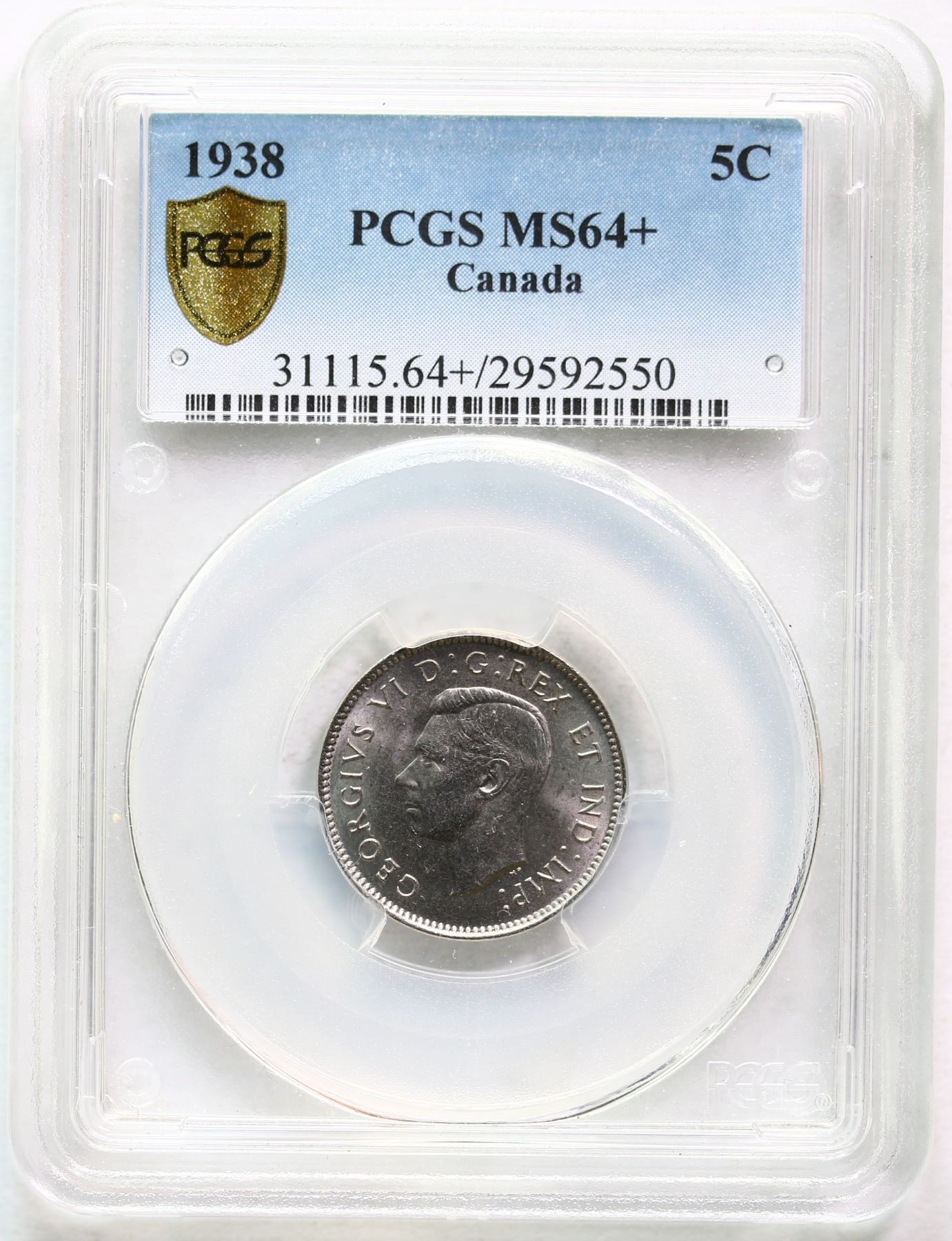1938 5¢ PCGS Very Choice Mint State-64+ Fully lustrous. Rarely offered in this grade.