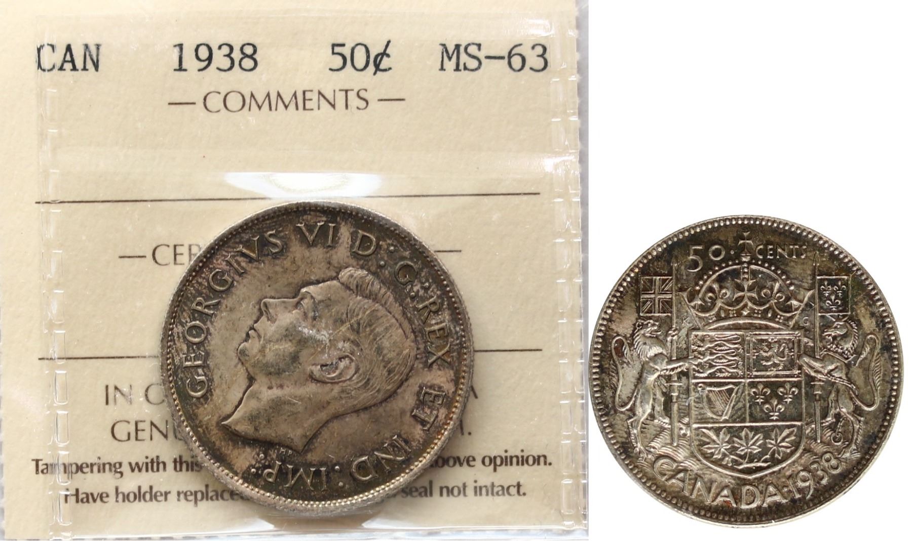 1938 50¢ ICCS Choice Mint State-63 Attractively toned.