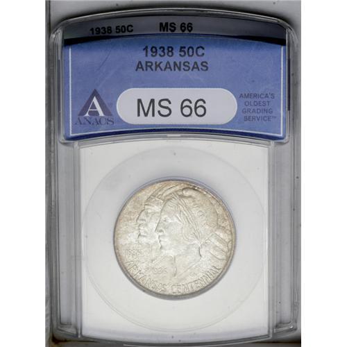 1938 50C Arkansas MS66 ANACS. Mottled lilac-gray and g 1938[50C] Arkansas MS66 ANACS.