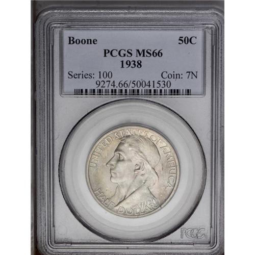 1938 50C Boone MS66 PCGS. A satiny Premium Gem with li 1938[50C] Boone MS66 PCGS.